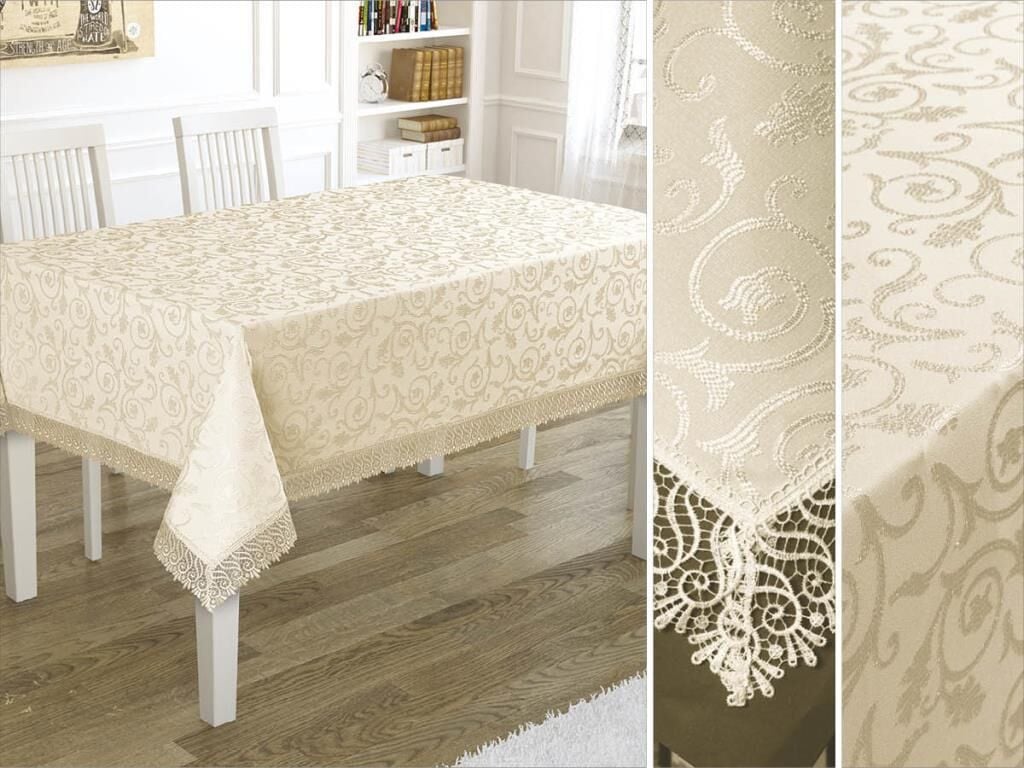 Zarif Güpürlü Masa Örtüsü Krem - 140 X 180